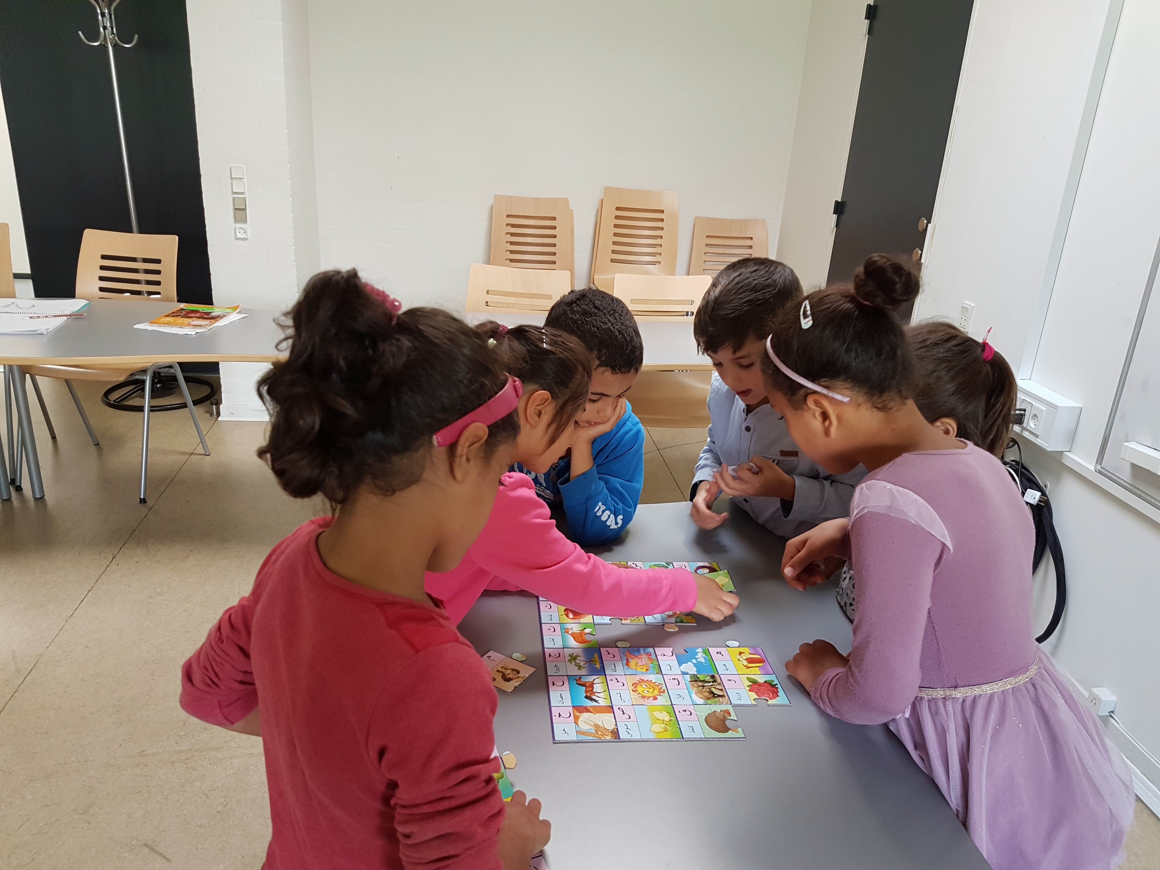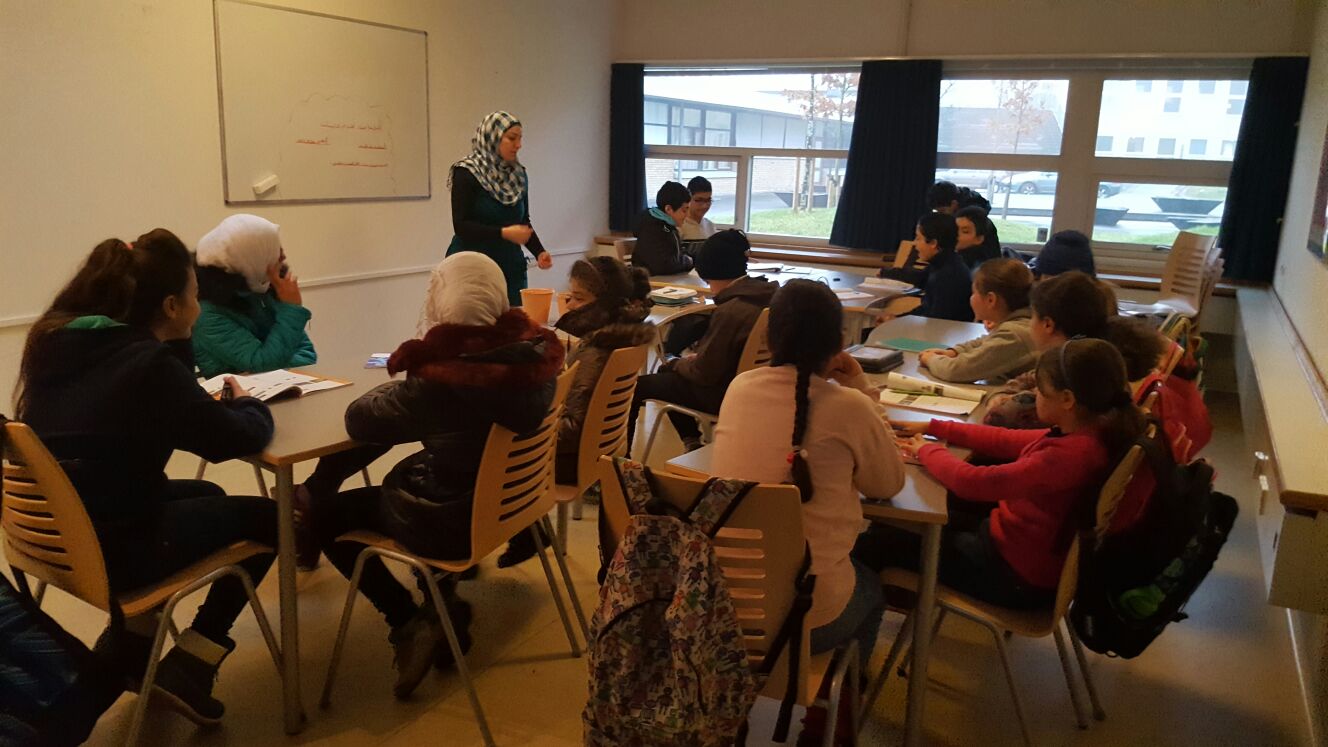 Hver lørdag underviser vi vores syriske børn i klassisk arabisk. Vi faciliteter selv frivillige kvalificerde undervisere. Vi ønsker at børnene bliver flydende på både dansk og arabisk, så de kan trække på begge kulturer. Vi tror på at det gavner deres dannelse og identitet, at de har lige adgang til litteratur, poesi, nyheder og historiske tekster på begge sprog.
